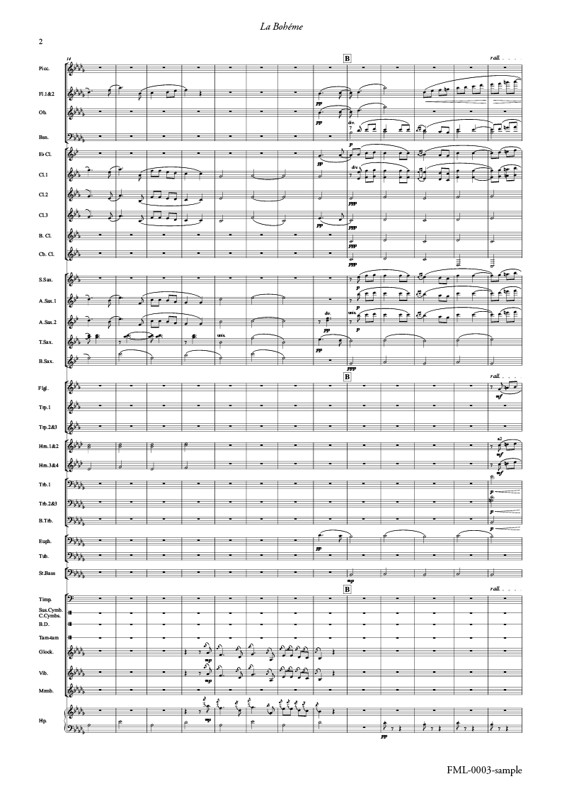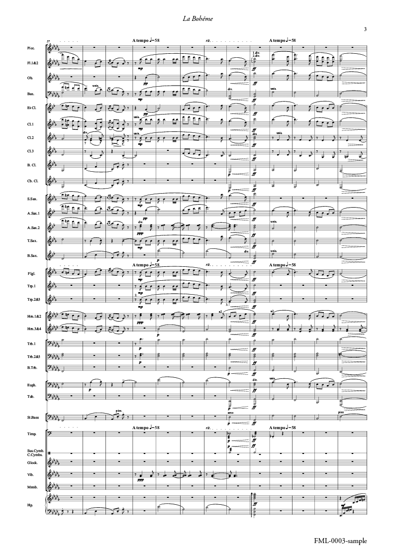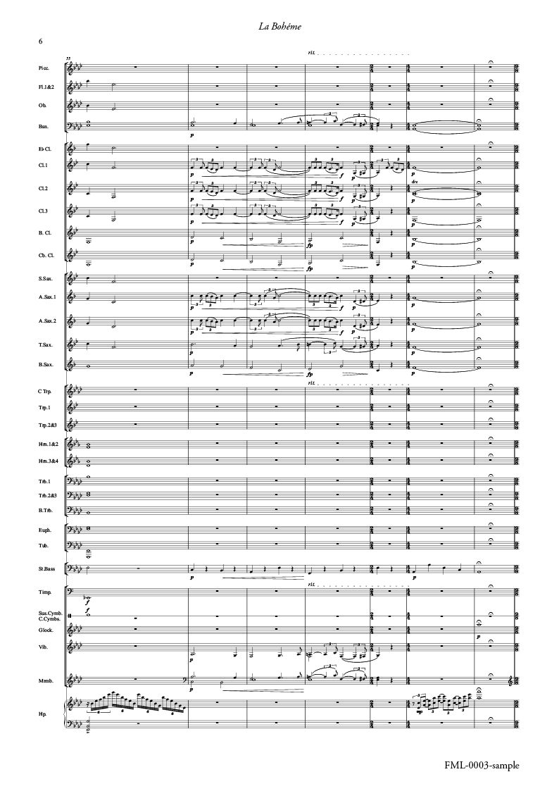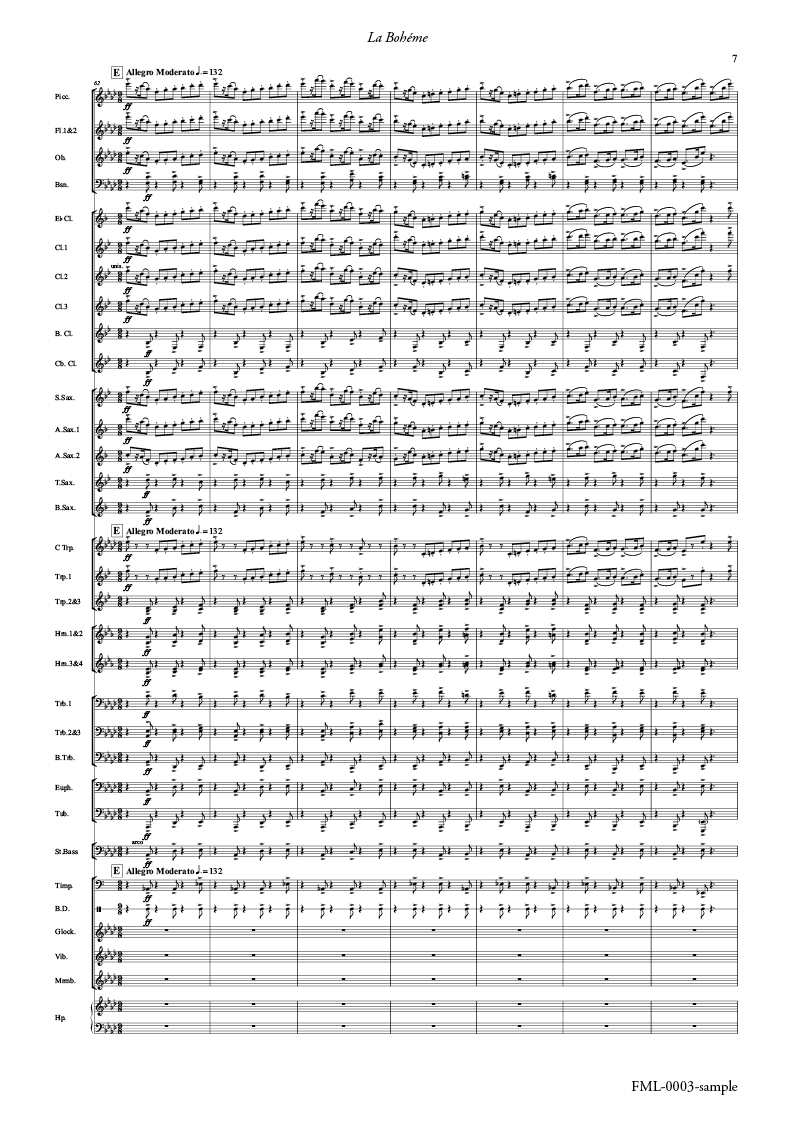 この編曲には、「冷たい手を」「おや!ムゼッタだ!」「ガヴォットだ!メヌエットだ!」「私の名はミミ」を取り上げ、1 曲にまとめてあります。演奏する場合、各場面を分けて考えるのではなく、1 曲の曲として演奏してください。音色の美しさや歌心などの音楽的な面でもかなり勉強になる曲だと思います、是非、「音楽する」ということを実感しながら演奏してみてください。(樽屋雅徳)